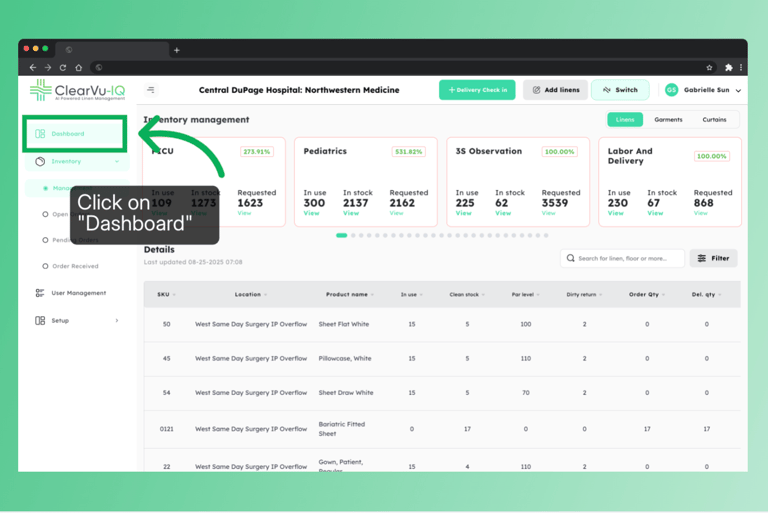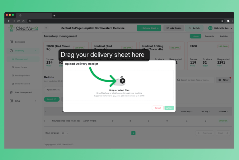 ClearVu IQ is an early-stage healthcare SaaS supporting linen operations across multiple roles (clinical staff, supply chain/EVS, admins, site admins, suppliers, and managers). In a fast-moving product with limited onboarding bandwidth, onboarding and “how do I do X?” questions often fell back on founder-led walkthroughs—time-consuming to deliver and expensive to keep current as workflows changed.